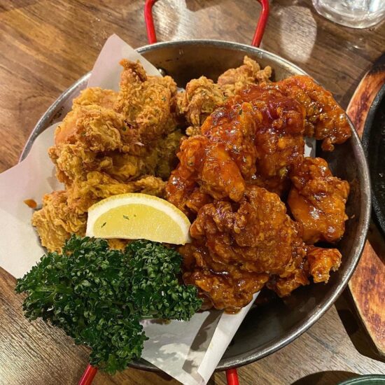 フライドãƒã‚­ãƒ³ã‚„ヤンニョムãƒã‚­ãƒ³ãªã©ç¾Žå‘³ã—ã„韓国ãƒã‚­ãƒ³ã€‚肉肉ã—ã„味ã¨ç¾Žå‘³ã—ã„タレã¨ã®ç›¸æ€§ãŒæŠœç¾¤ã§ã™ã€‚