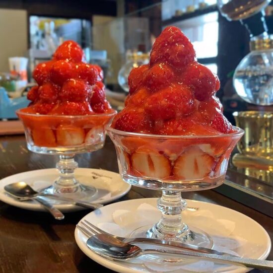 たくさん盛られた酸味が効いたイチゴとアイスクリームの相性が抜群!期間限定のかき氷も人気なので是非訪れてみてくださいね!