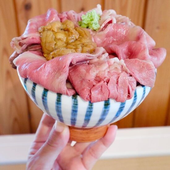 ローストビーフとウニのコラボが抜群の丼!その他にもオリジナル商品がたくさんあるので是非訪れてみてくださいね!