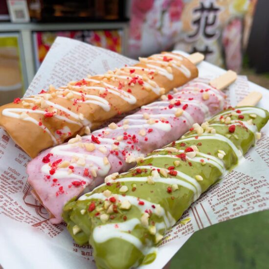 米粉を使った素朴の味わいに、甘さが魅惑する大人気スイーツ。串に刺さっていてフォルムも可愛く食べ歩きに大人気です。