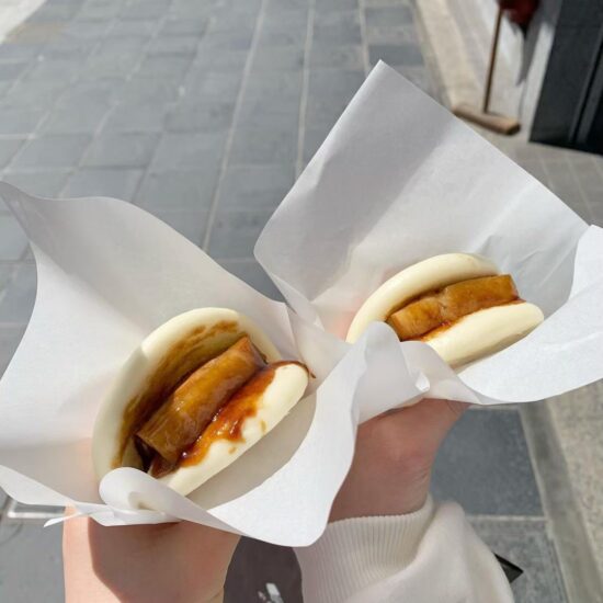 学問の神様・菅原道真公を祀る太宰府天満宮にちなんだ合格煮まん!もちもちの皮に甘いタレと肉厚の角煮は相性抜群です。
