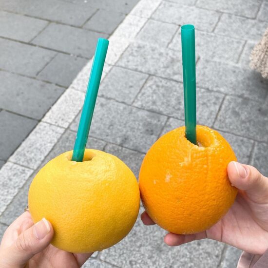オレンジやグレープフルーツにストローを刺してそのままいただける新感覚ジュース!食べ歩きドリンクにも最適です。
