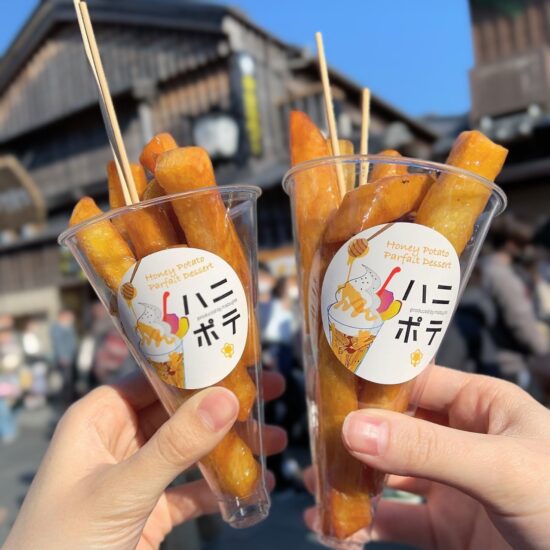 - 大学芋を自家製の蜂蜜でコーディングしたハニポテ