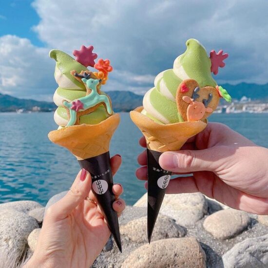 広島県の宮島で可愛いアイスクリームを売っているうまいもの館!