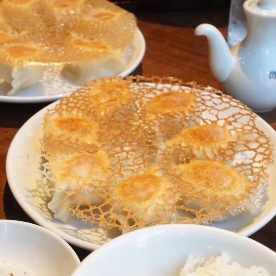 パリパリの羽根にもっちりした皮が特徴。中からはジューシな餡と肉汁が溢れ出す大人気グルメでです。