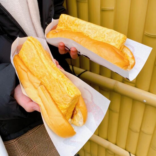 鰹の一番出汁をとり、出来立てほやほやの絶品だし巻きドック。渋谷で人気の食べ歩きフードです。