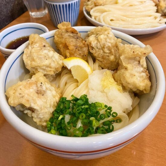 少し甘めなおつゆに上質なコシがある、美味しいうどん。かしわ天ぷらはジューシなお肉にレモンの酸味が味わえる絶品うどんです。