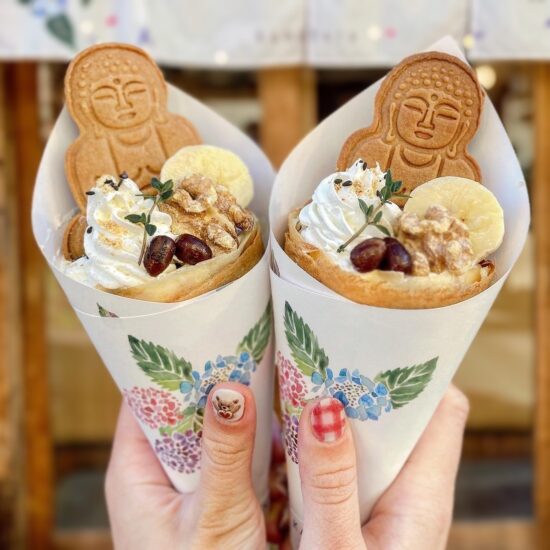 ã‚‚ã£ã¡ã‚Šçš®ã®ã‚¯ãƒ¬ãƒ¼ãƒ—ã«éŽŒå€‰å¤§ä»ã®ãƒ“スケットをトッピングã—ãŸã‚¤ãƒ³ã‚¹ã‚¿æ˜ ãˆã‚°ãƒ«ãƒ¡ã€‚坿„›ã•ã ã‘ã§ãªãã€ç”Ÿã‚¯ãƒªãƒ¼ãƒ ã®ç”˜ã•ãªã©çµ¶å¦™ã®ãƒ†ã‚¤ã‚¹ãƒˆã€‚