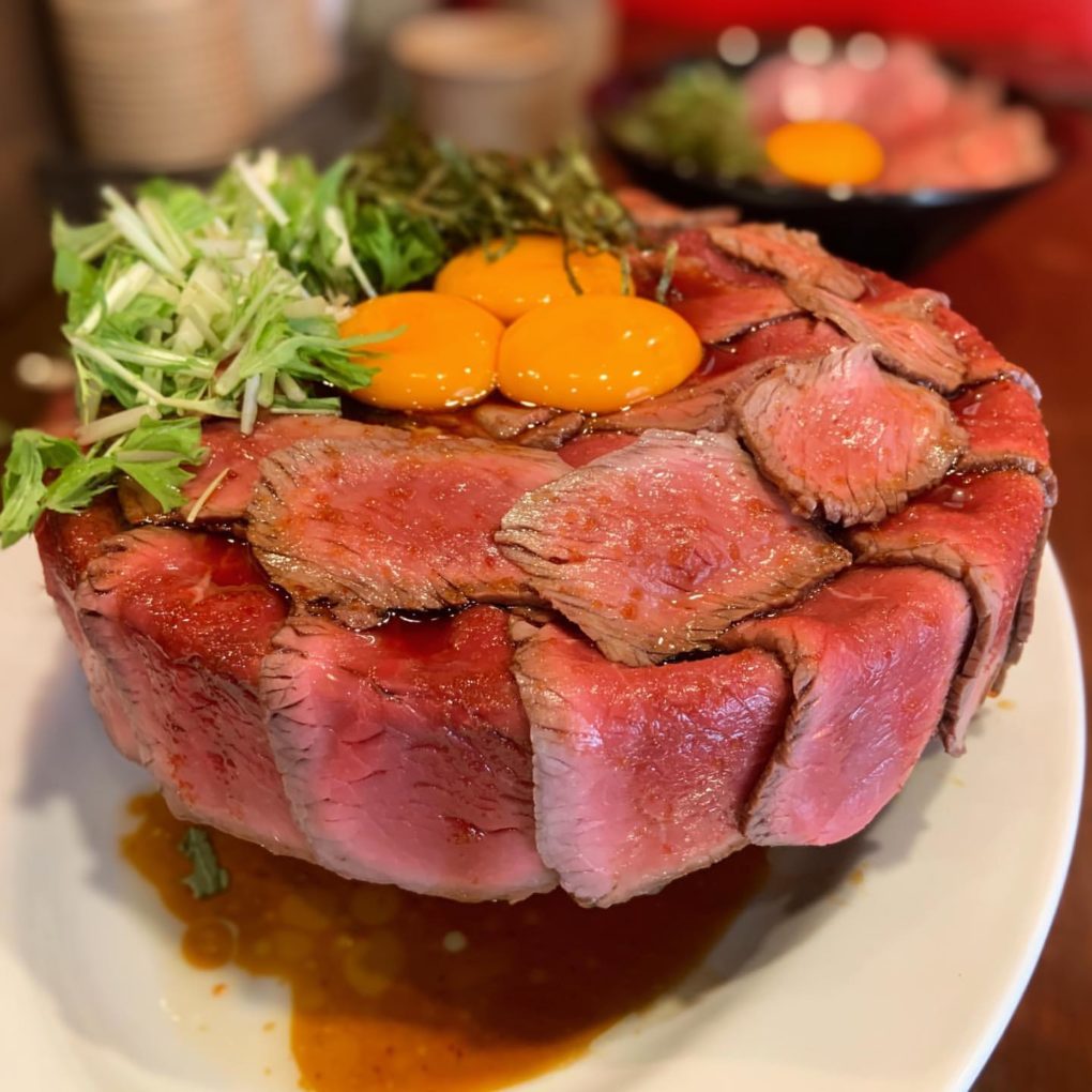 ローストビーフ丼は火加減も絶妙でお肉の旨味が引き出した絶品グルメ。トッピングも豊富で、人気メニューです。