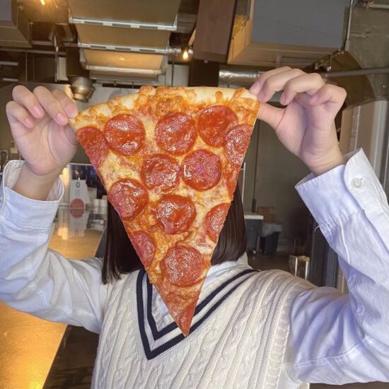 - 13 顔が隠れるほどのアメリカンサイズのピザ『TOKEN PIZZA』