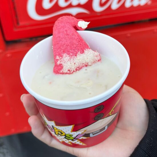 サンタクロースの雰囲気を出した美味しく温かいクリームチャウダー。寒い冬にはとっておきのグルメです。