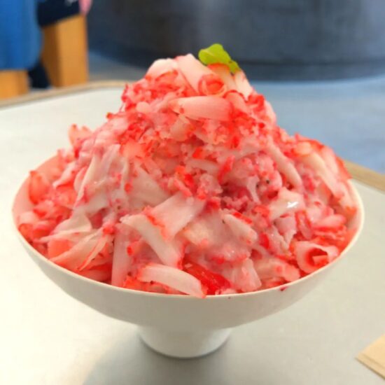 | ” 氷ではなくて凍ったイチゴを削っているので甘酸っぱいです ヒンヤリさっぱりとしてます。 口に入れるとふわっと溶けてなくなります ” |