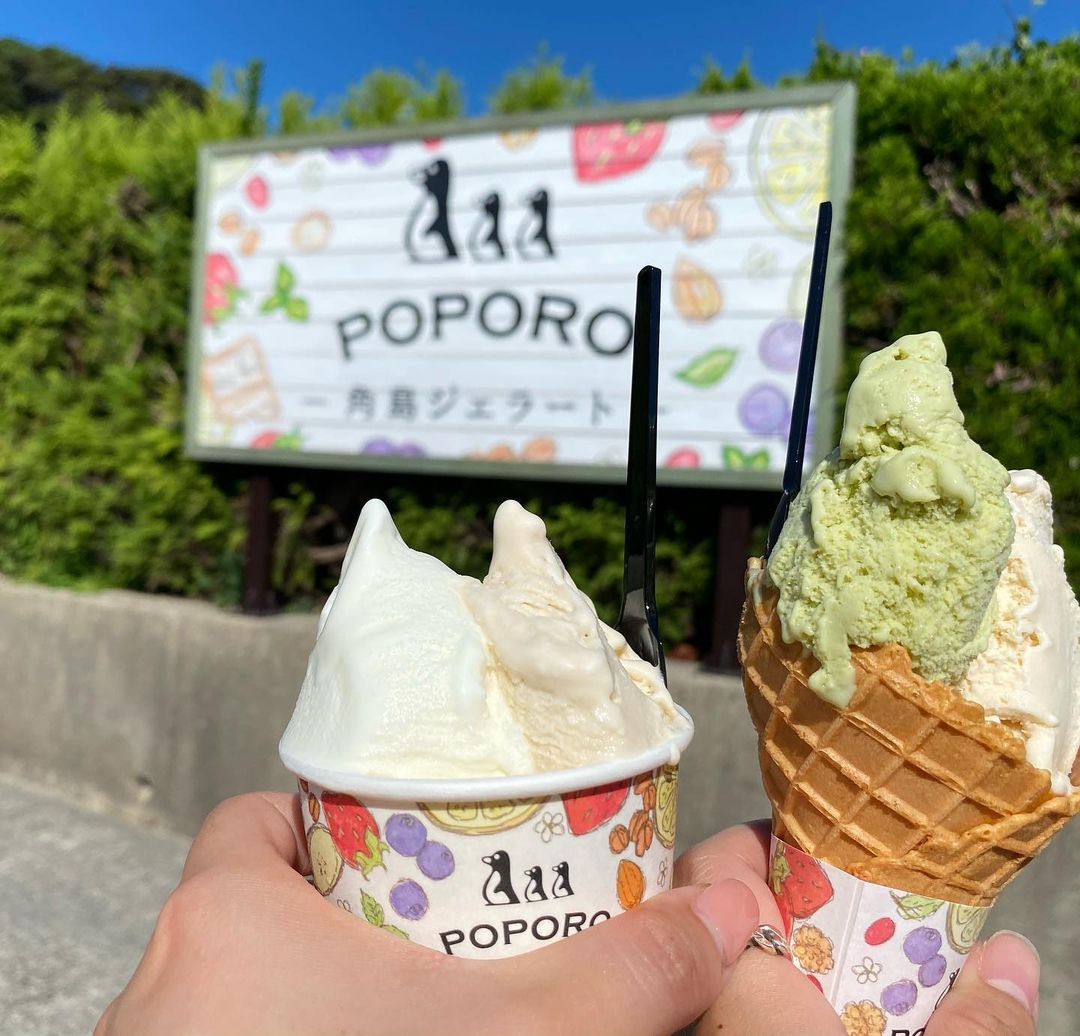 山口県の観光名所である角島大橋の近くにあるジェラート屋さん角島ジェラートポポロさんです!